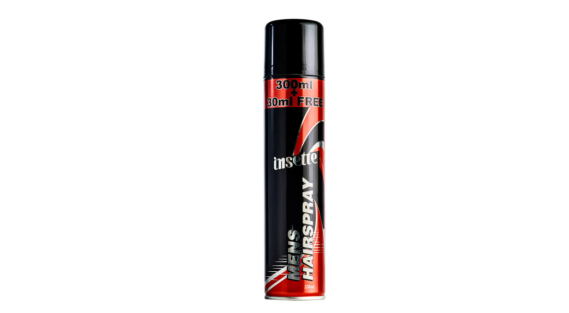 Insette for Men Extra Hold Hairspray. Will keep your hair in place naturally, brushes out easily, low fragrance.